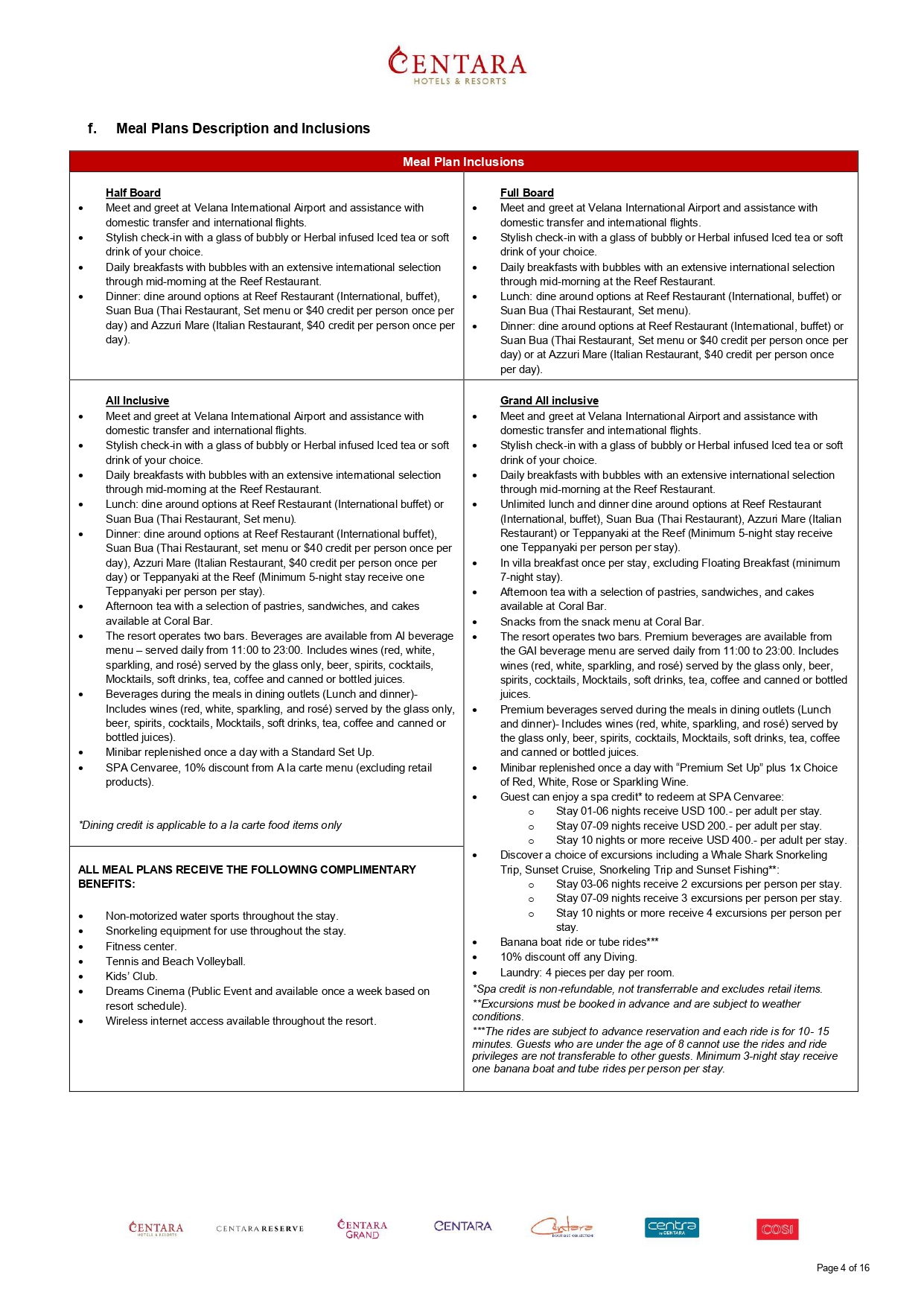 สิทธิประโยชน์ฟรีสำหรับผู้เข้าพักทุกแพ็กเกจอาหาร (All Meal Plans)