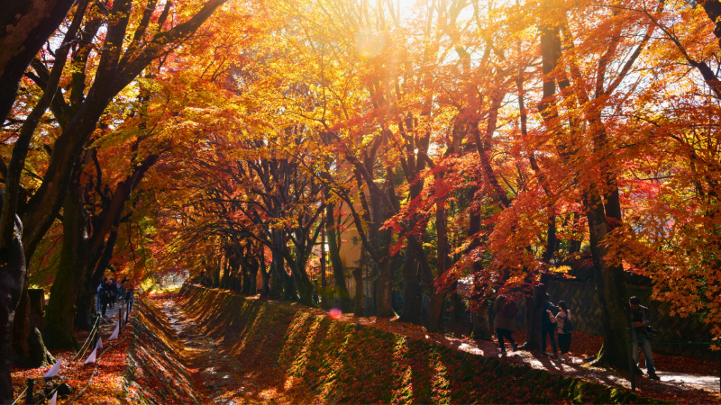 3. ฤดูใบไม้ร่วง ไฮไลท์ คือ ใบไม้เปลี่ยนสีโดยเฉพาะที่สวนเมจิ จินกู และภูเขาทาคาโอะ เทศกาลสำคัญ คือ เทศกาลชิบะ มัตสึริ ( Shiba Matsuri )
