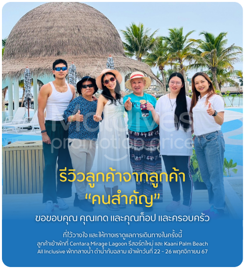 - ราคาข้างต้นเป็นราคาและโปรโมชั่นพิเศษ ณ ปัจจุบัน หากมีโปรโมชั่นราคาพิเศษกว่านี้ออกมาจะไม่สามารถ Re-book ได้
