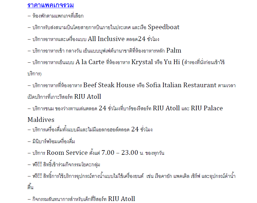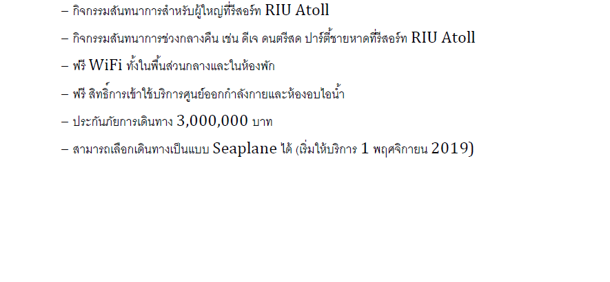 รีสอร์ท 5 ดาวเปิดใหม่ล่าสุด เดินทางโดย Speedboatใช้เวลาเพียง 15 นาที มีบริการแบบ All-inclusive รวมอาหารทุกมื้อและเครื่องไม่อั้นตลอดการเข้าพัก เพื่อช่วยให้คุณเพลิดเพลินกับการพักอย่างสะดวกสบาย Hotel Riu Palace Maldivas ตั้งอยู่บนเกาะส่วนตัวของ Kedhigandu ซึ่งเป็นส่วนหนึ่งของ Dhaalu Atoll มีเครื่องดื่มแบรนด์พรีเมียมทั่วทั้งโรงแรม ร้านอาหารหลักและชุดรูปแบบ สระว่ายน้ำอินฟินิตี้พร้อมบาร์ในสระ ฟรียิมและห้องอบไอน้ำ