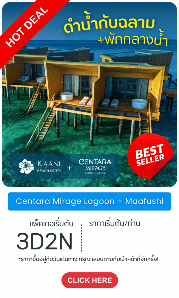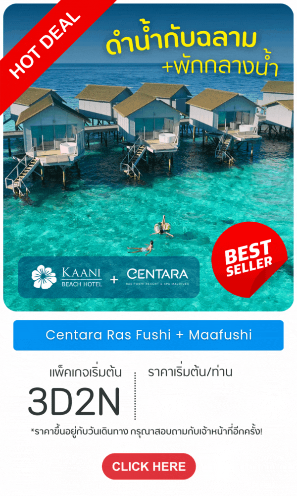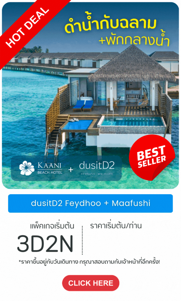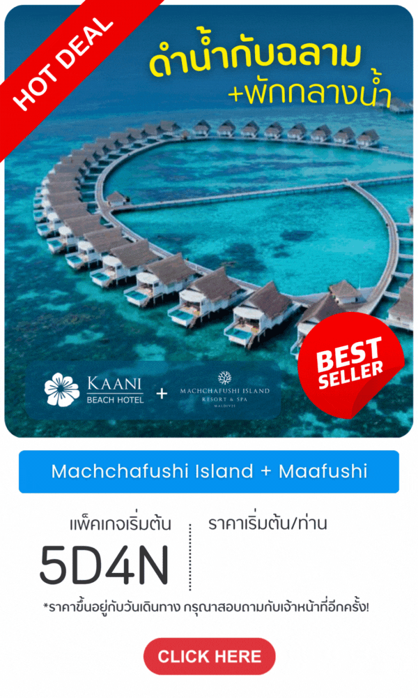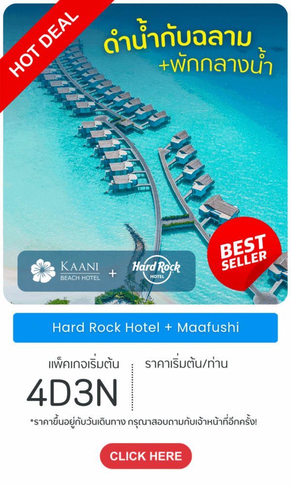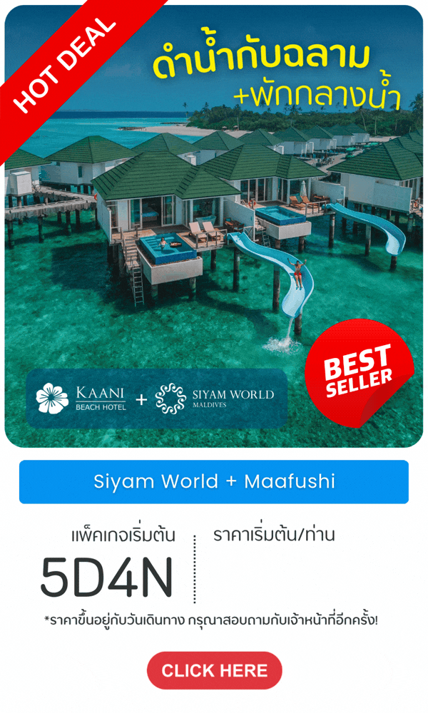 ✓ พักกลางน้ำรีสอร์ท 4 - 5 ดาว แบบ All-Inclusive อาหารและเครื่องดื่มไม่อั้น!✓ พักเกาะท้องถิ่น Kaani Palm Beach ทำกิจกรรมดำน้ำกับฉลาม เล่นน้ำกับกระเบน ล่องเรือดูโลมา