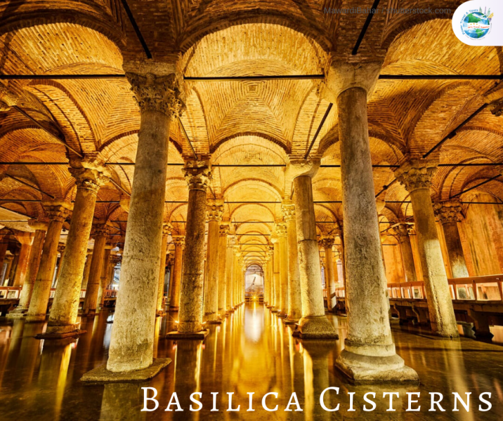 Basilica Cistern เป็นทางระบายน้ำและเก็บน้ำใต้ดินในสมัยโรมันไบเซนไทน์ (ค.ศ.527-565) คำว่า Basilica คือสถานที่ทางศาสนาหรือโบสถ์ ส่วนคำว่า Cistern คือที่เก็บน้ำ Basilica Cistern ทางเข้า Basilica Cistern Basilica Cistern สามารถเก็บน้ำได้ถึง 1 แสนตันเลยทีเดียวนะ ด้วยความยาวของทางเดินใต้ดินนี้ถึง 140 เมตร และกว้าง 70 เมตร เรียกได้ว่าถ้าใครเคยวิ่งร้อยเมตรก็มีหอบล่ะ