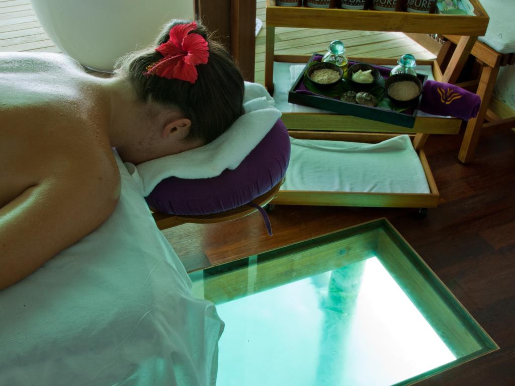 3 จูเนียร์ฮันนีมูนวอเตอร์วิลล่า ความพิเศษคือพื้นกระจกที่ช่วยให้แขกผู้เข้าพักได้มองเห็นโลกใต้ทะเลที่เป็นเอกสิทธิ์ของความสะดวกสบายของที่พักในมัลดีฟส์