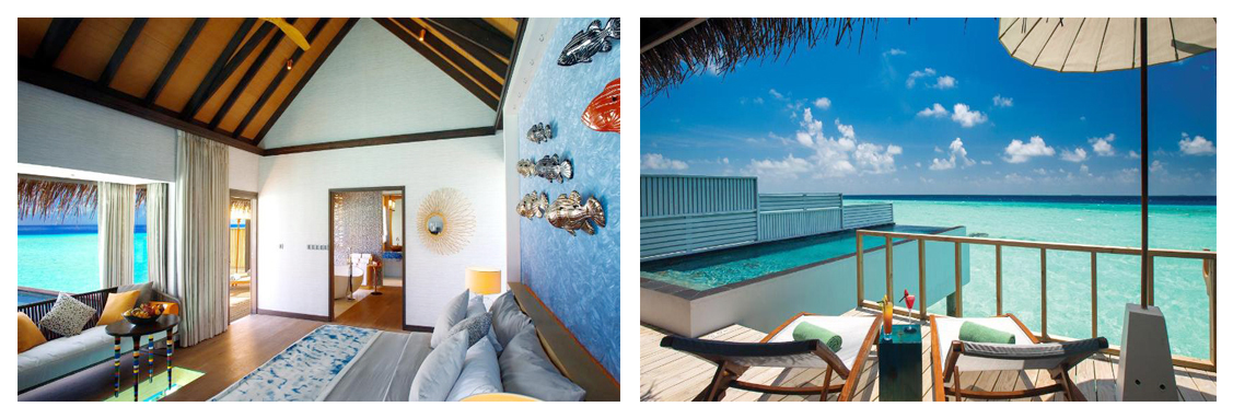 เดินทางโดย Speedboat 50 min ตั้งอยู่บนเกาะที่เงียบสงบของ Maadhooไลฟ์สไตล์หรูหรา มีสระว่ายน้ำกลางแจ้งเปิดให้บริการตลอดทั้งปี พื้นที่ชายหาดส่วนตัว บาร์บีคิว สนามเด็กเล่น พื้นที่เลานจ์ส่วนกลาง สปา ซาวน่า ร้านทำผม ห้องฟิตเนส กิจกรรม เช่น ดำน้ำตื้น และวินด์เซิร์ฟ ตกปลา พายเรือแคนู เป็นต้น ภายในห้องพักมีโทรทัศน์จอแบน iPad บางห้องมีพื้นที่นั่งเล่นสำหรับผ่อนคลาย ห้องน้ำส่วนตัวพร้อมอ่างอาบน้ำ ที่พักมีแผนกต้อนรับเปิดทำการตลอด 24 ชั่วโมง อาหารสุดหรูแบบ All-Inclusive