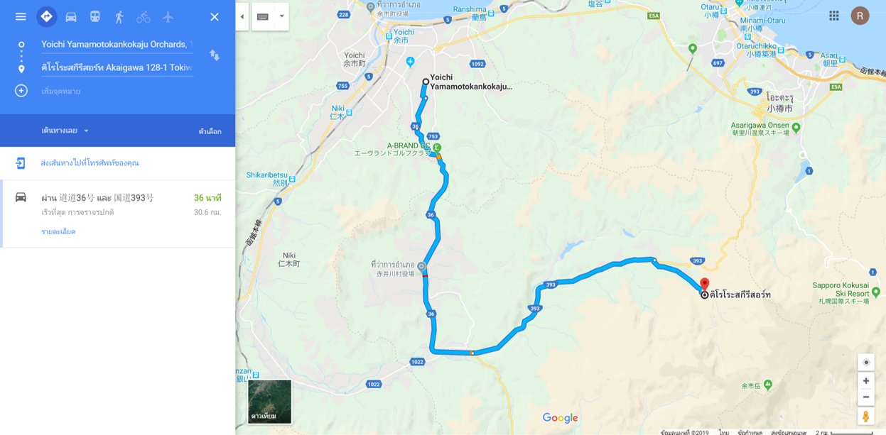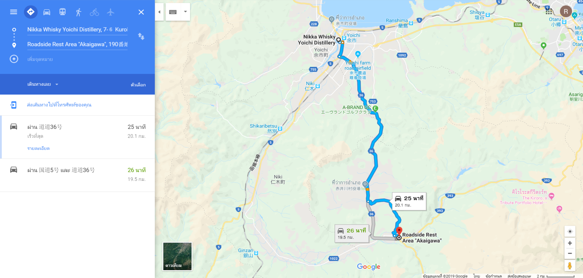 รายละเอียดเส้นทาง จาก Nikka Whiskey - Michi No Eki