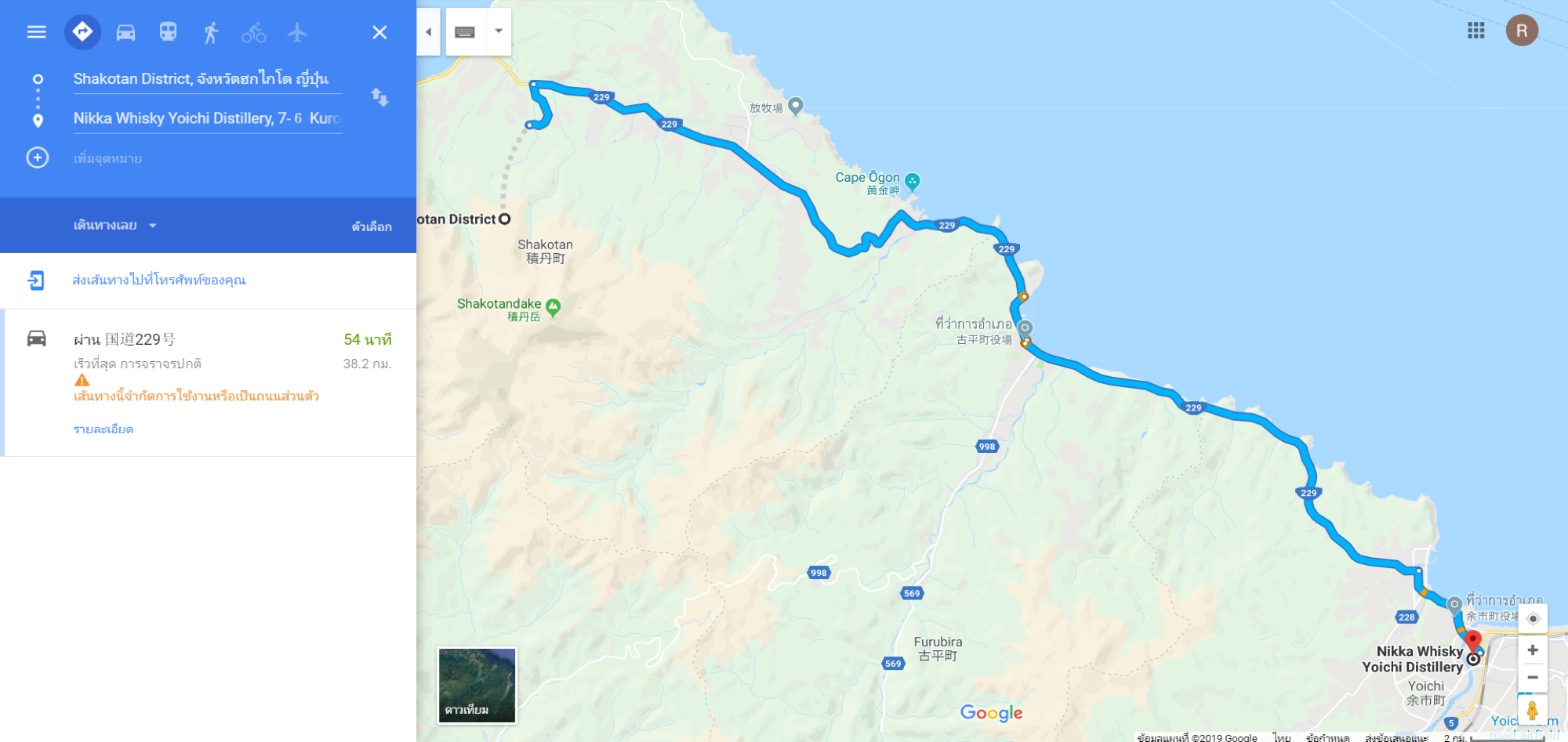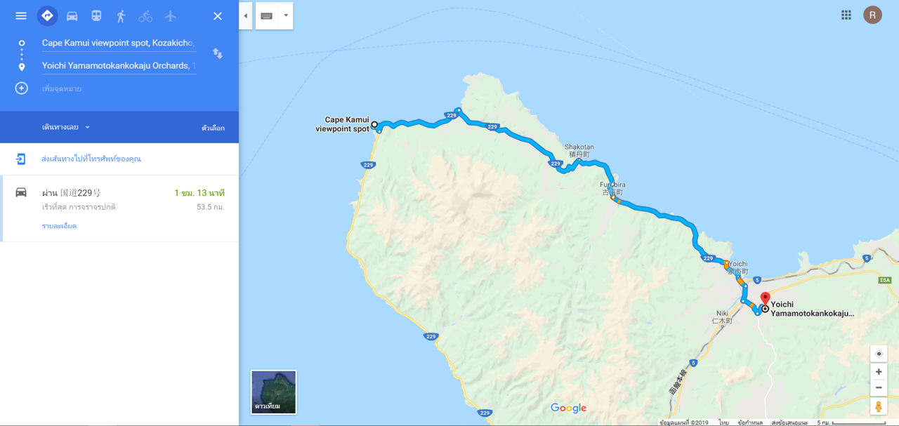 รายละเอียดเส้นทาง จาก Shakotan - Nikka Whiskey
