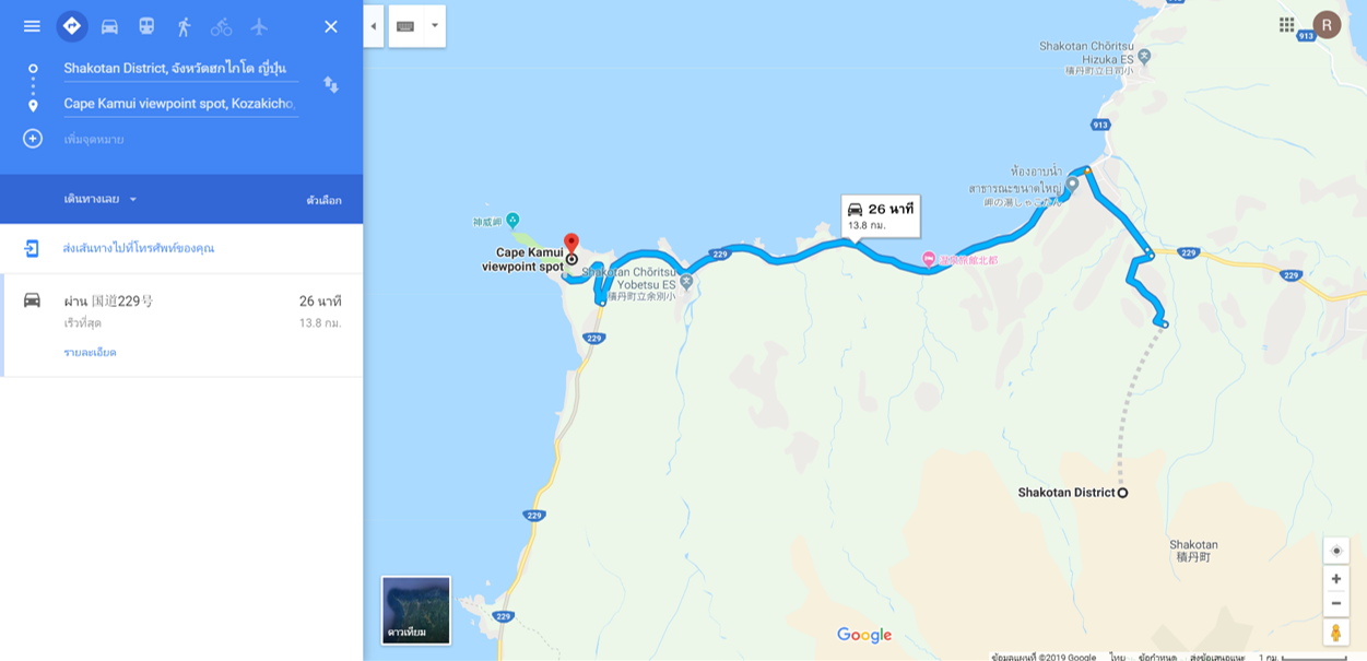 รายละเอียดเส้นทาง จาก Cape Kamui Viewpoint - Shakotan