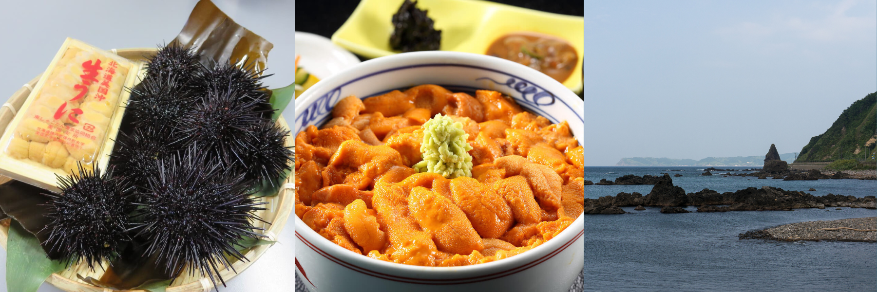 ซึ่งหอยเม่นของที่นี่จะแบ่งออกเป็น 2 ชนิดคือ คือ บะฟุนอุนิ (バフンウニ, หอยเม่นขี้ม้า) และมุราซากิอุนิ (ムラサキウニ, หอยเม่นม่วง) ว่ากันว่าช่วงหน้าร้อน เป็นช่วงที่หอยเม่น อร่อยที่สุด