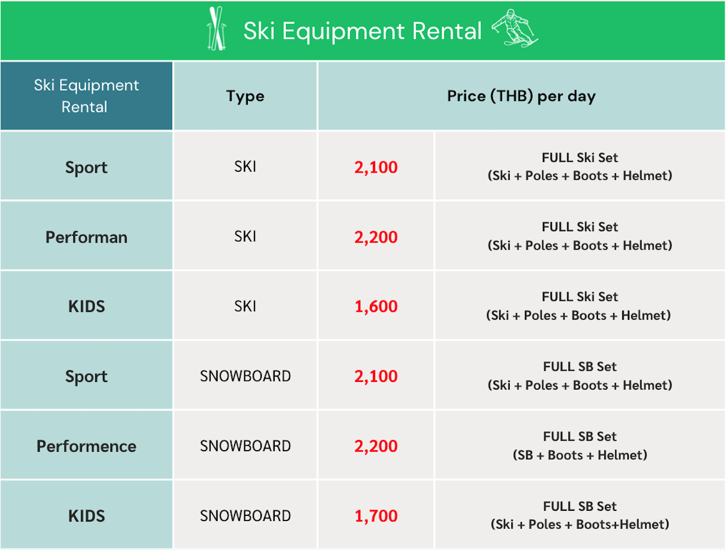 Club Med Kiroro Peak ข้อดี จะเป็น Ski In – Ski Out เข้าออกเล่นสกีได้เลย แพ็คเกจ All Inclusive คลับเมด นอกจากอาหารเครื่อมดื่มแล้ว ที่นี่รวม Ski Pass และคอร์สเรียน สกี สโนว์บอร์ดพื้นฐานให้ด้วย วันละ 2 รอบ รอบละ 2.30 ชม. โดยเช้าเริ่ม 10.00 น. และบ่ายเริ่ม 14.00 น. สำหรับคนที่นำชุดและอุปกรณ์มาเองสามารถนำมาใช้ได้เลย สำหรับคนที่ไม่มีสามารถเช่าได้ที่ Mountain Center (รายละเอียดค่าใช้จ่ายด้านล่าง) *แนะนำให้ลองชุด อุปกรณ์ ตั้งแต่วันแรกที่เช็คอินเลยเพราะอาจจะไม่ทันคลาสเช้า หลังจากลองชุด อุปกรณ์เสร็จ บนอุปกรณ์จะมีบอกเลขรหัสสำหรับอุปกรณ์ แต่ละชิ้น ให้ถ่ายภาพเก็บไว้เพราะแต่ละชิ้น จะเป็นของไซส์ใครไซส์มันจะได้ไม่สลับกัน