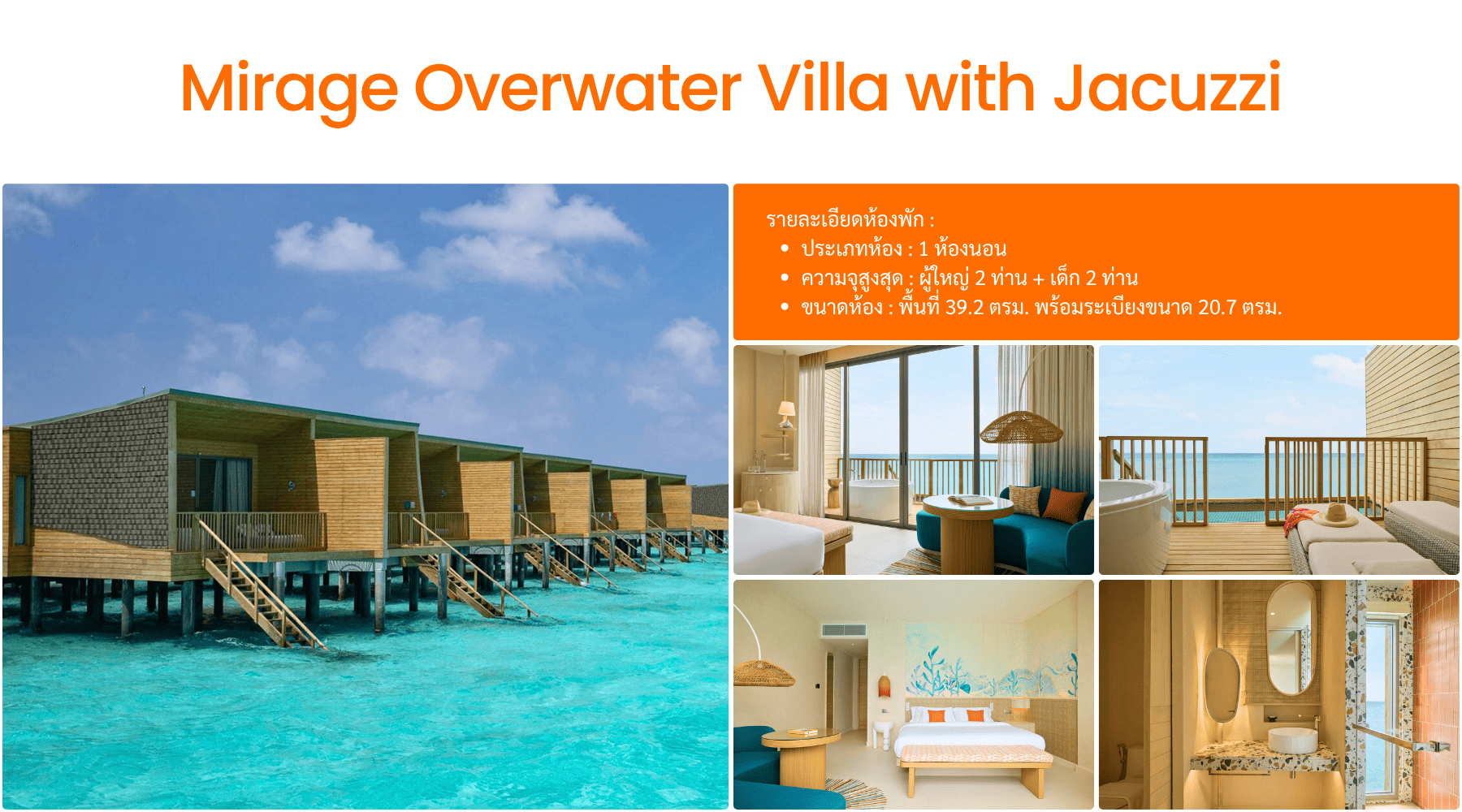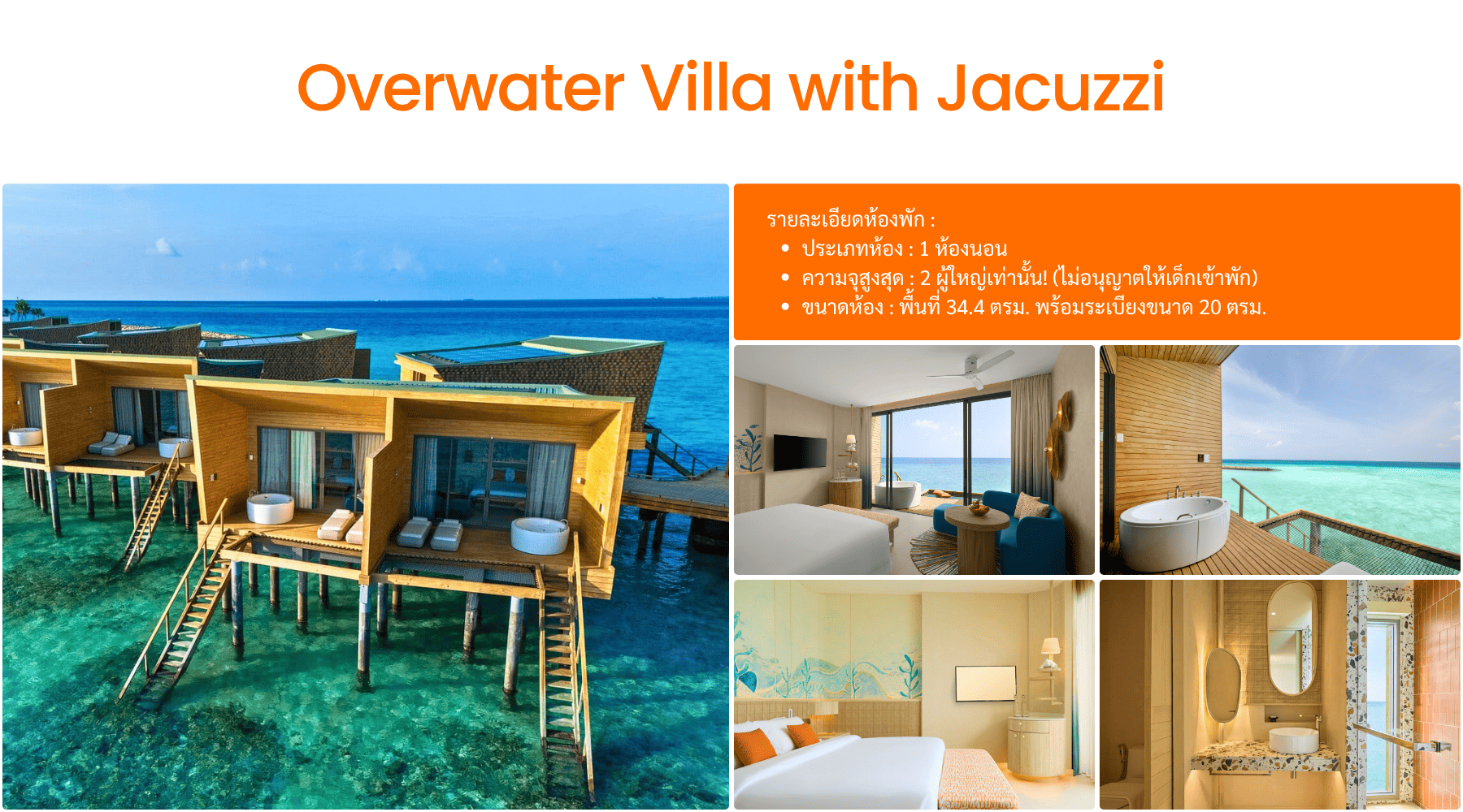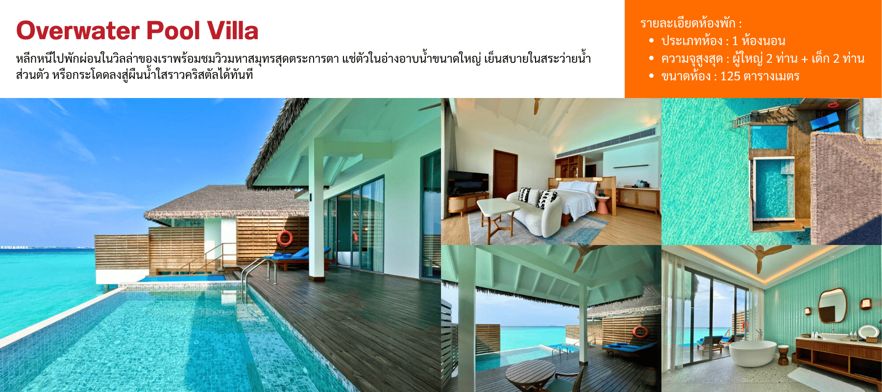 *เด็กอายุต่ำกว่า 8 ปี ไม่อนุญาตให้เข้าพักที่ห้อง Overwater Water Villa*