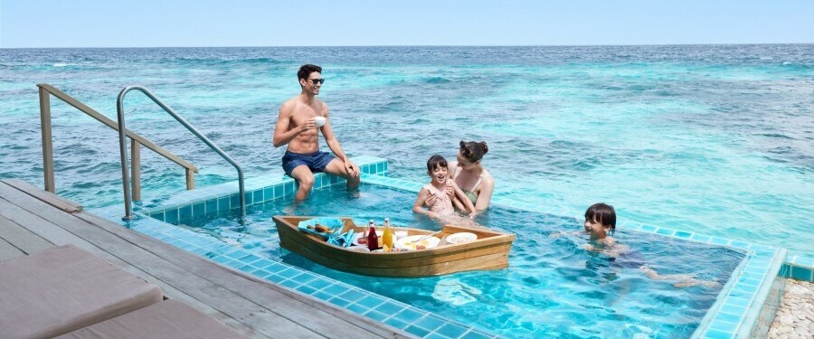 • 14:00  |  เข้าพักห้อง Sunset Water Villa with Private Pool & Jacuzzi วิลล่ากลางน้ำพร้อมระเบียงชมวิวพรอาทิตย์ตกแบบพาโนรามา