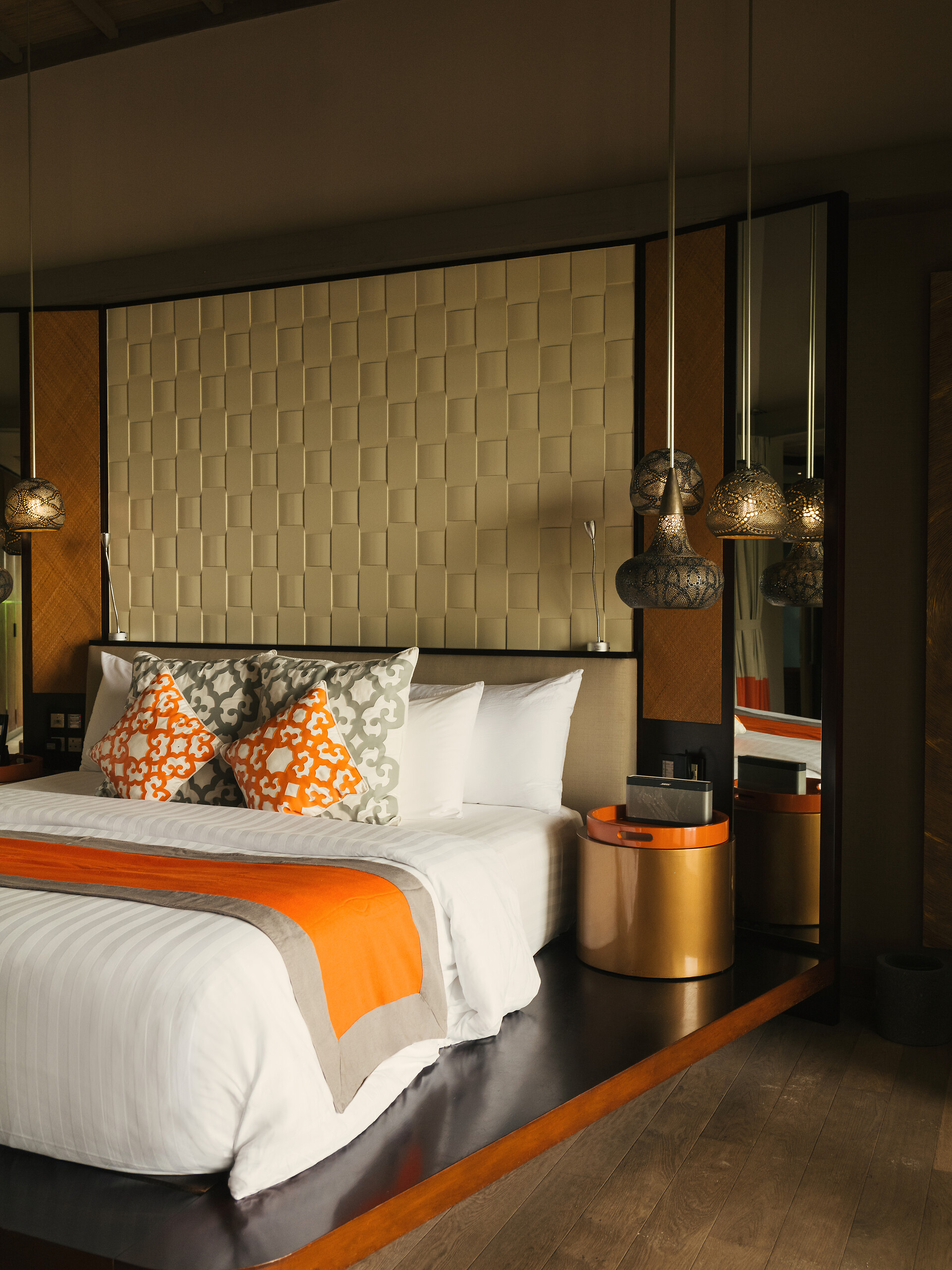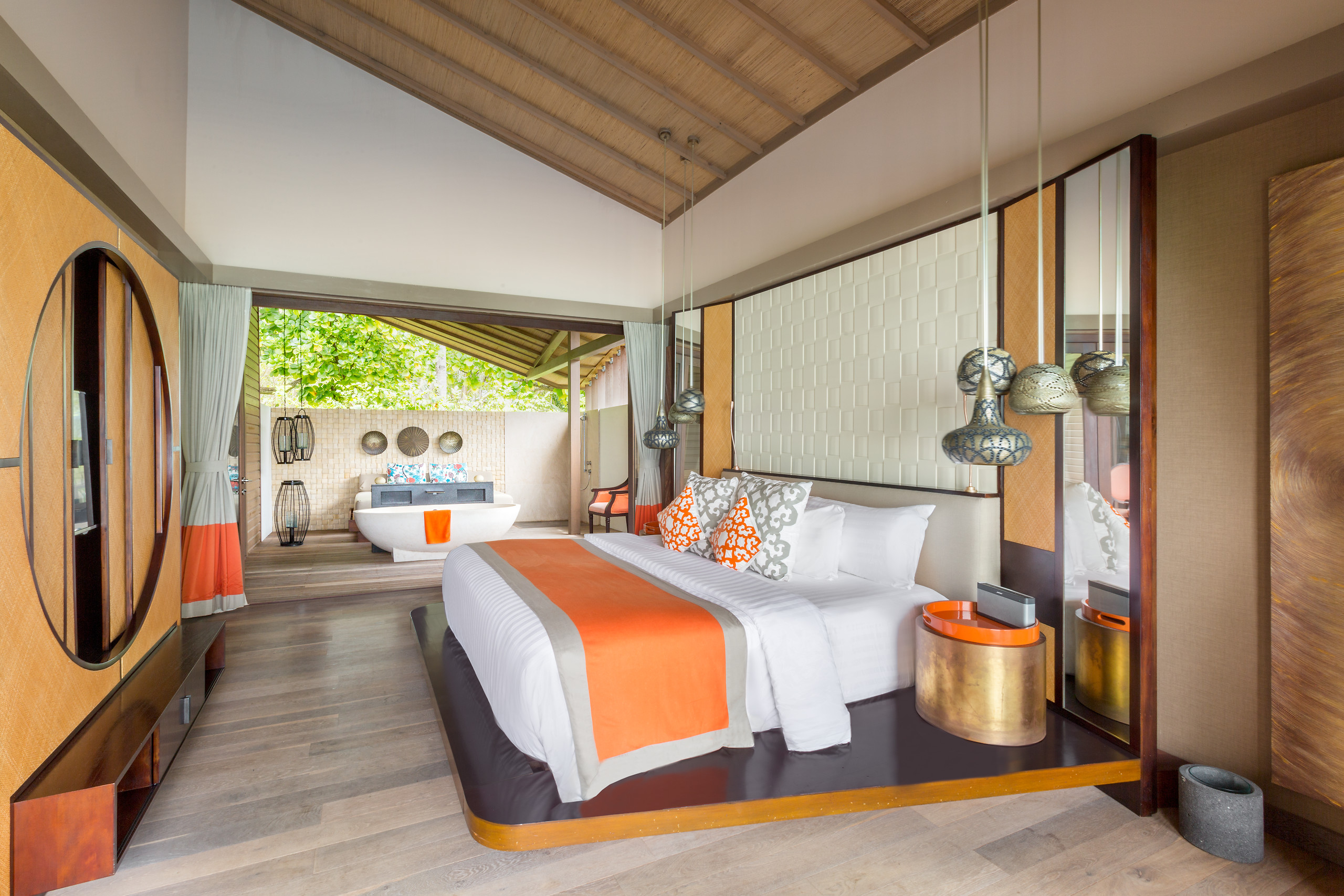 - การตกแต่งห้องพักในสไตล์ทันสมัย ผสมผสานกับธรรมชาติอย่างลงตัว ใช้วัสดุจากธรรมชาติและสีสันที่อบอุ่น