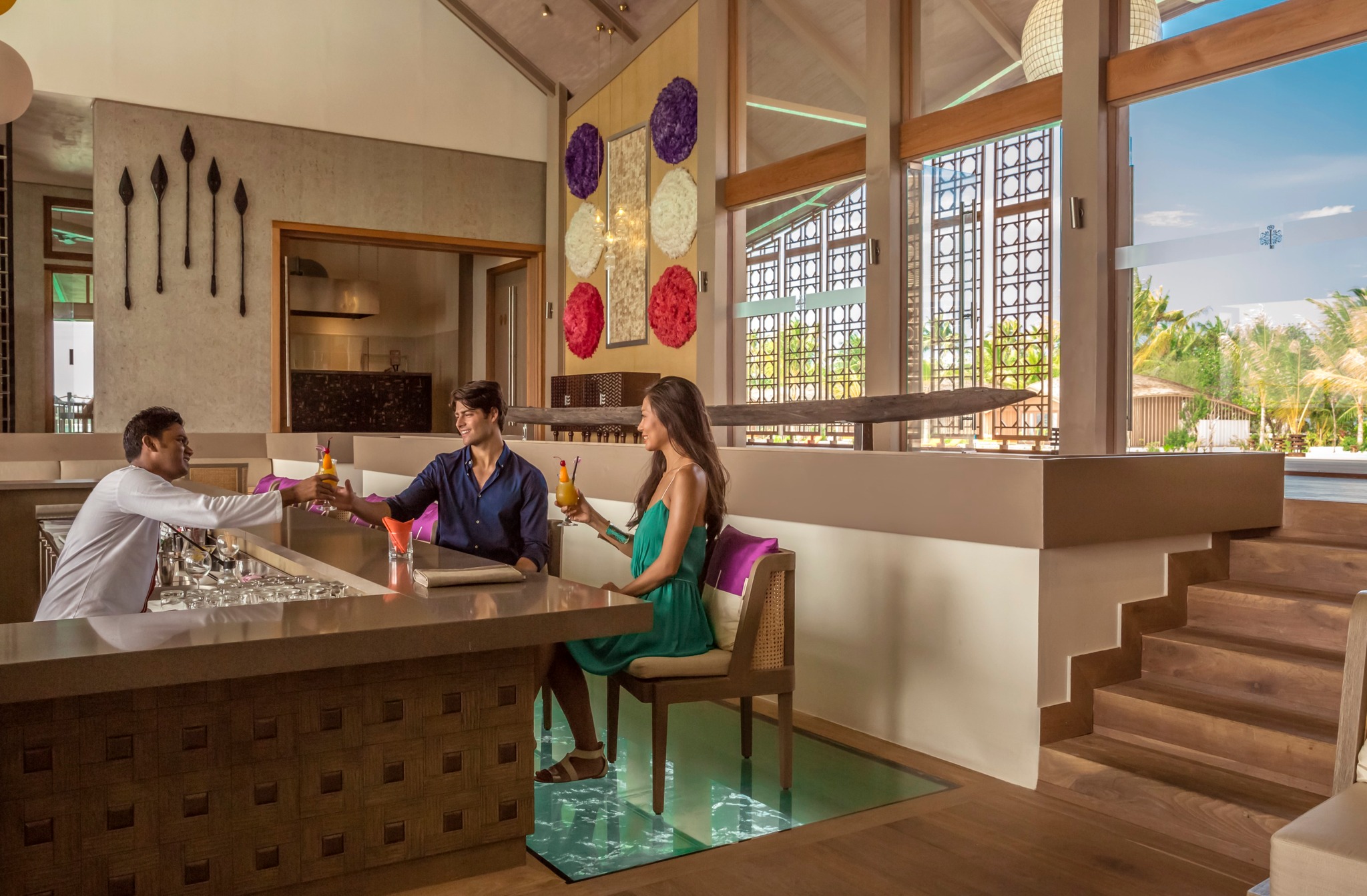 2. The Motu Bar เป็นบาร์หลักที่อยู่ให้ห้องอาหาร The Motu Restaurant ซึ่งนับเป็นจุดเด่นหนึ่งของรีสอร์ท มีพื้นกระจก มองเห็นน้ำเลใส และปลานานาชนิดด้านล่าง ด้านด้วยบรรยากาศที่สบายๆ และการบริการที่ยอดเยี่ยม!