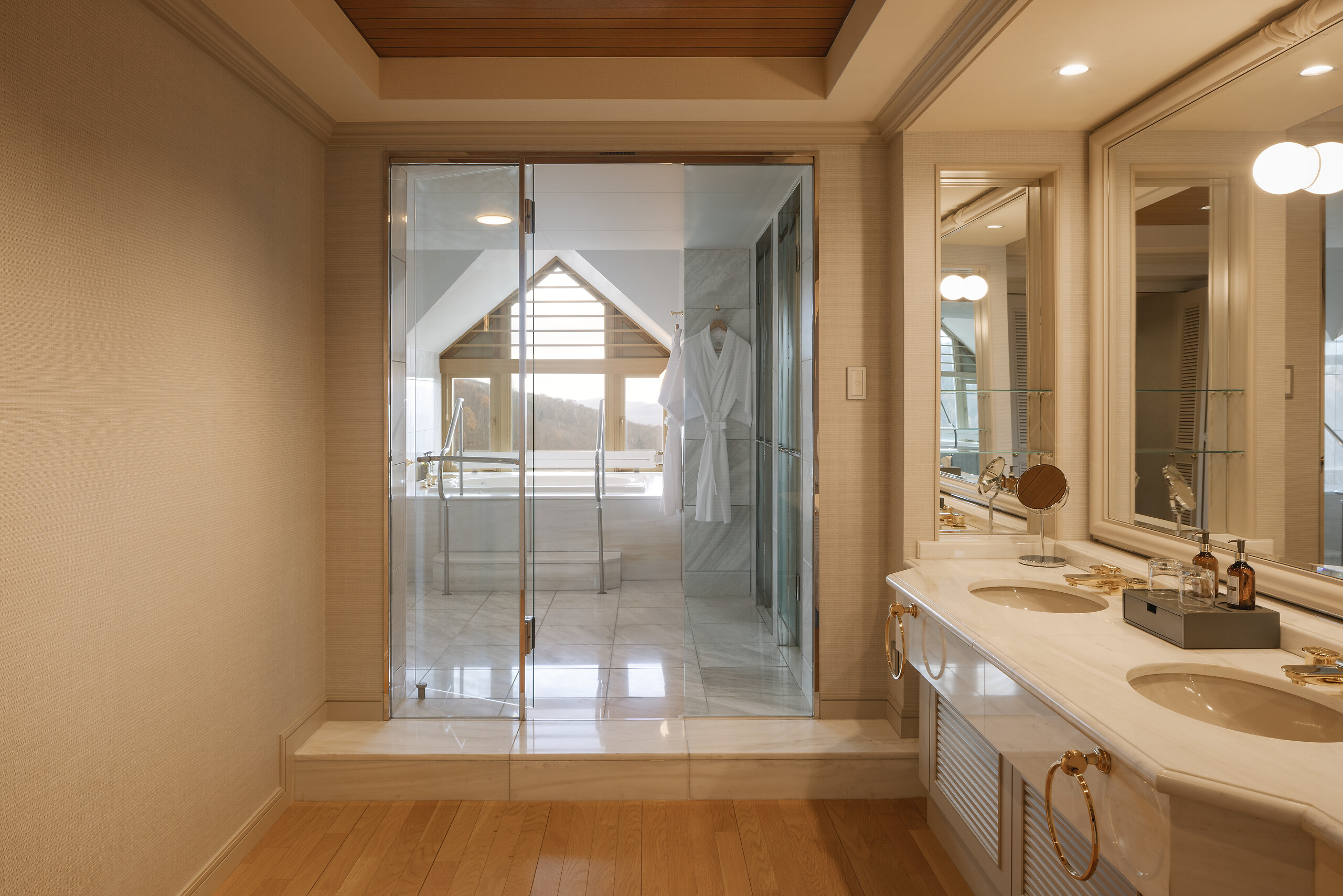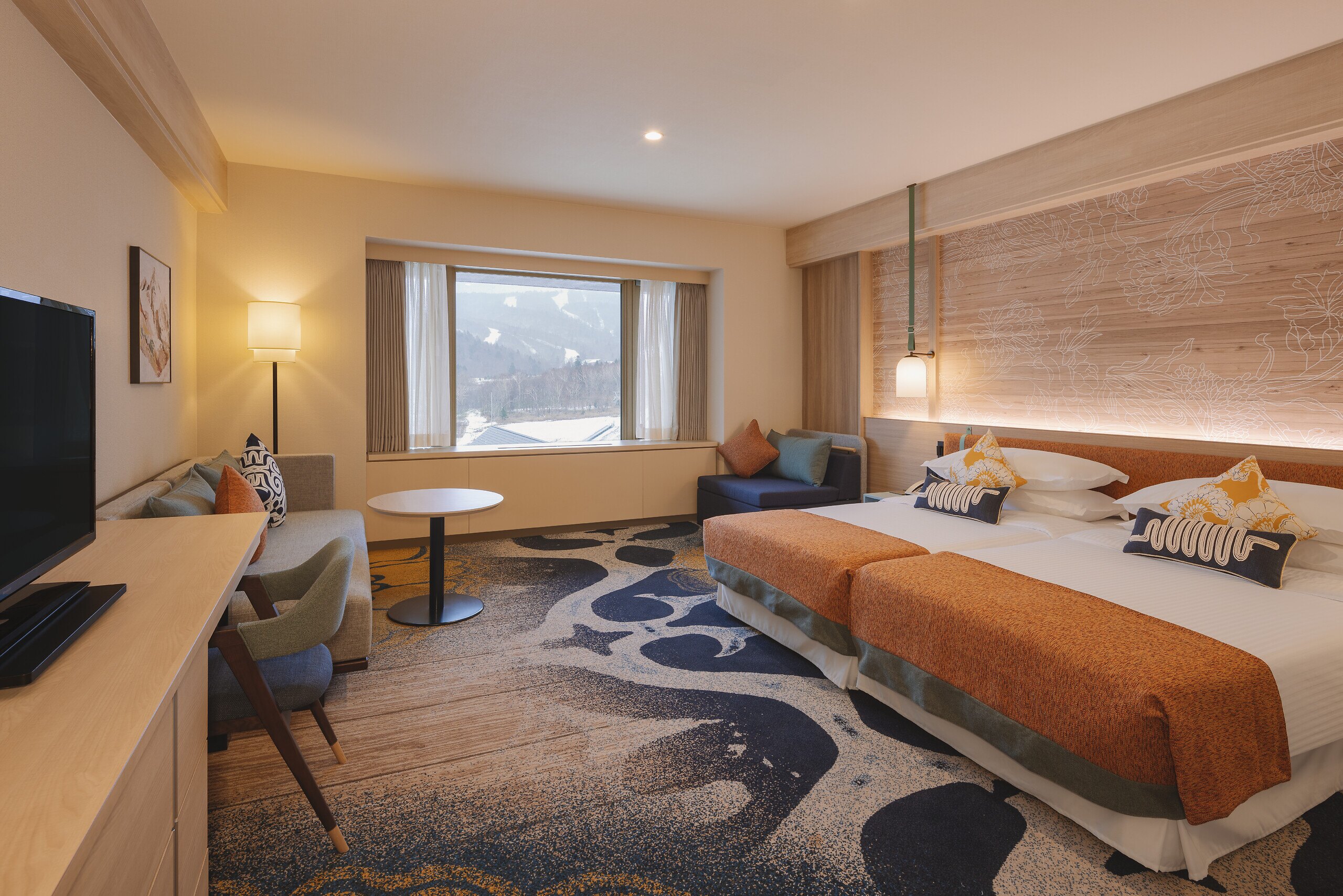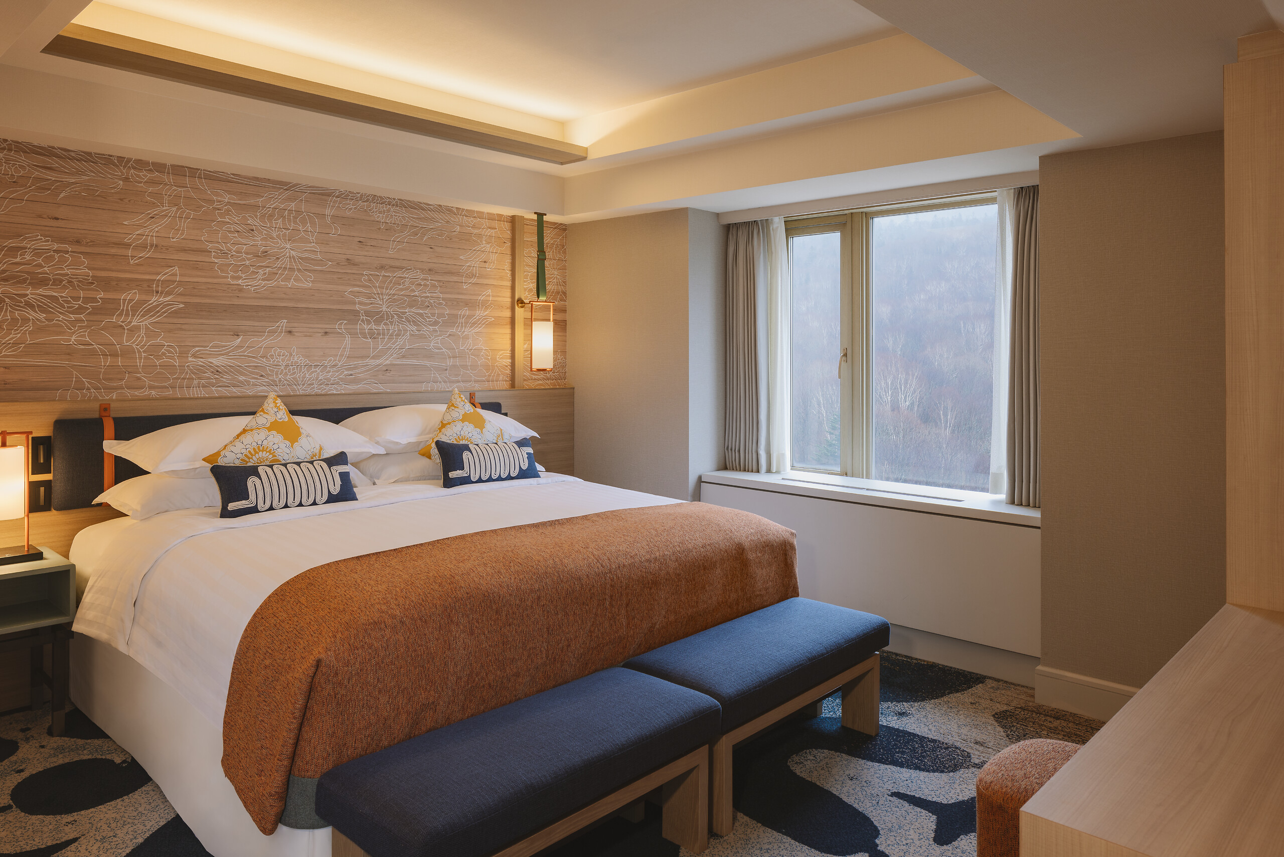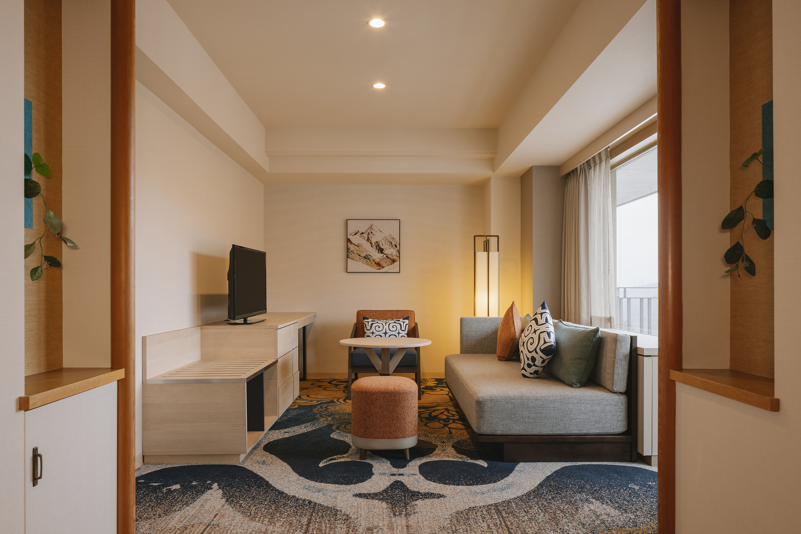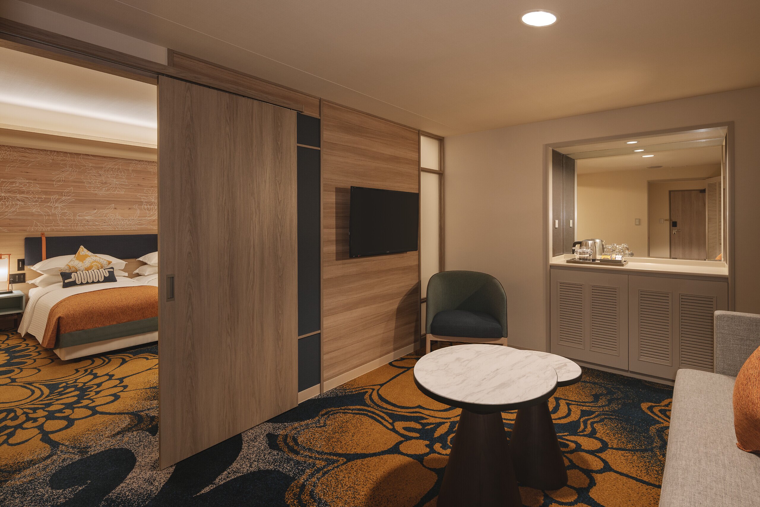 การตกแต่ง : การตกแต่งสไตล์ญี่ปุ่นที่ร่วมสมัย ซึ่งมีการใช้วัสดุธรรมชาติและการออกแบบที่เรียบง่ายแต่หรูหรา