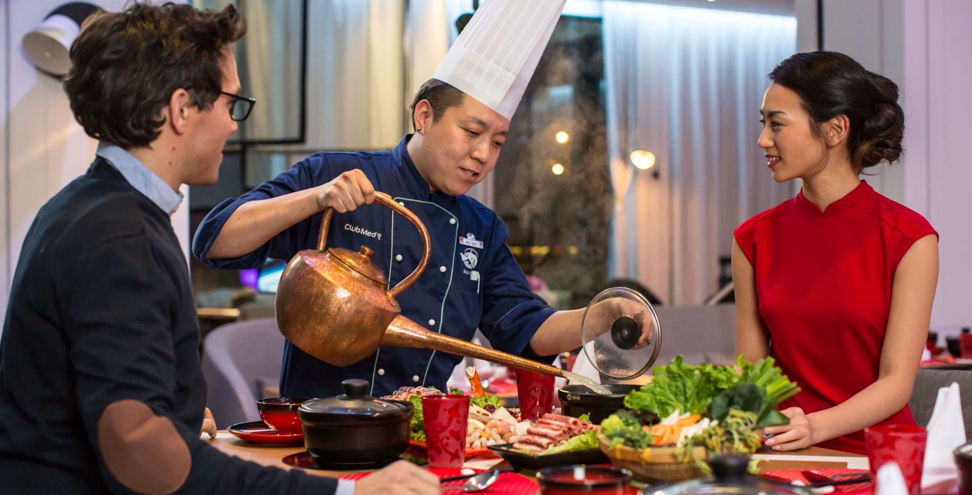 ชื่อ : Le Petit Bus Rouge (Speciality Restaurant)ประเภทอาหาร : ฟองดูจีนดั้งเดิมหรือ “จิ้มจุ่ม” มีทั้งเนื้อวัวหรือไก่, อาหารทะเล และผักหลากหลายชนิด สามารถปรุงส่วนผสมของตัวเองตามที่คุณเลือก