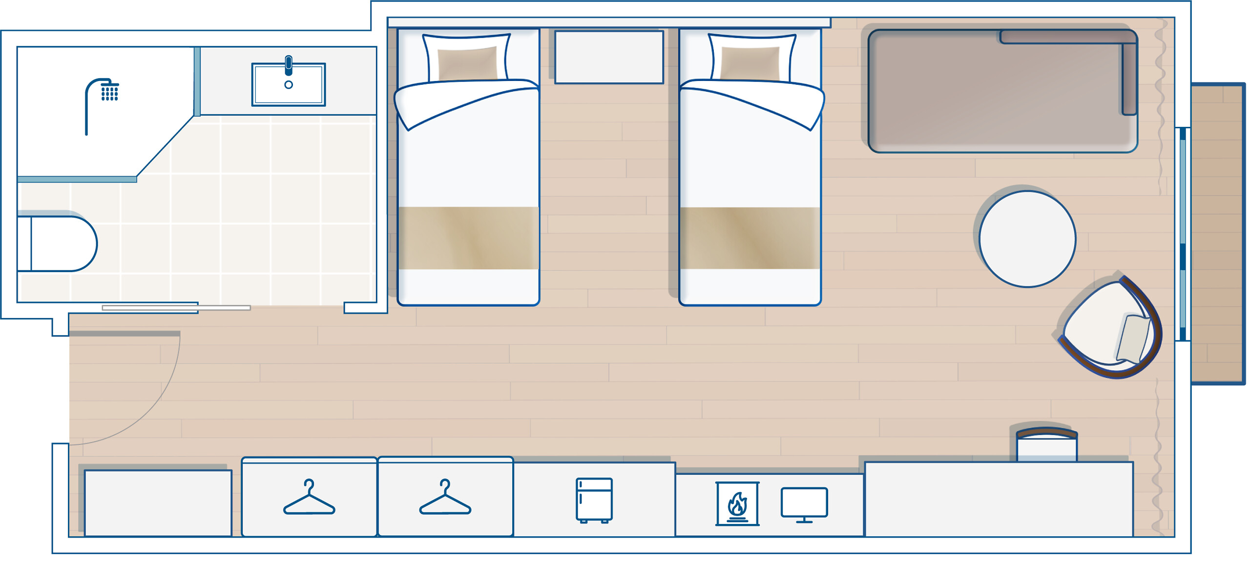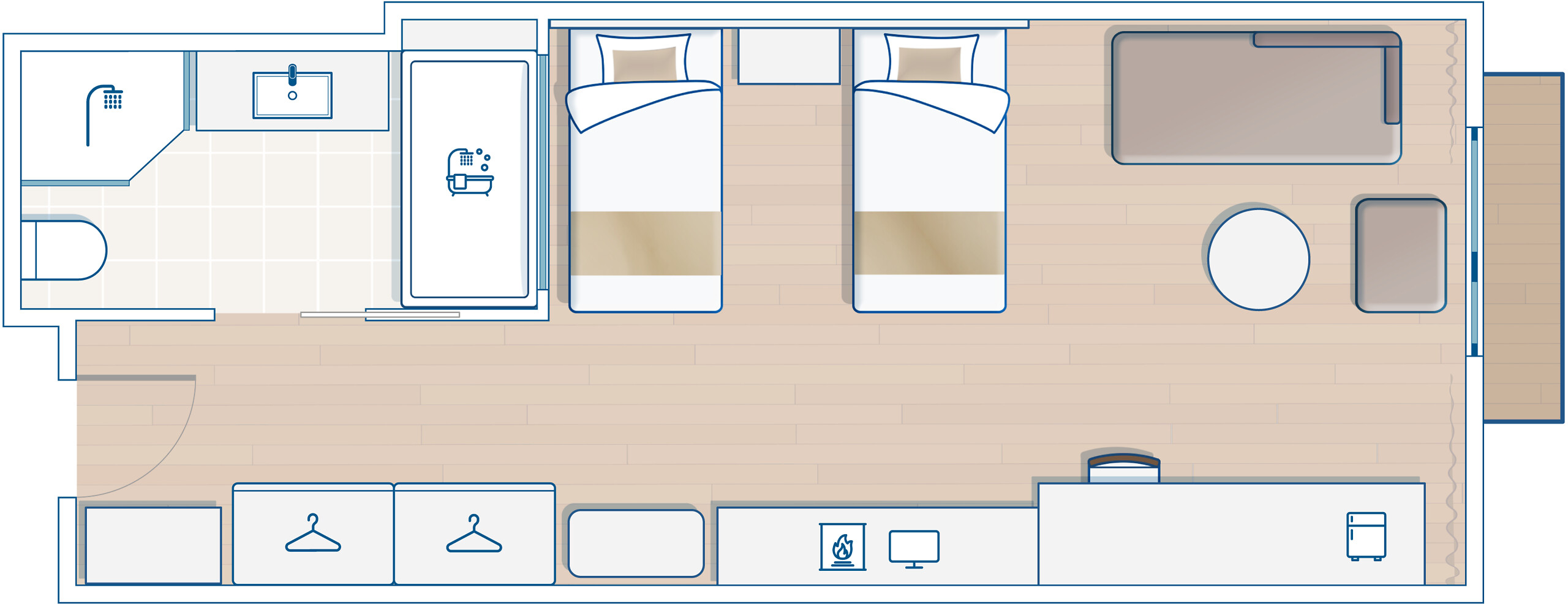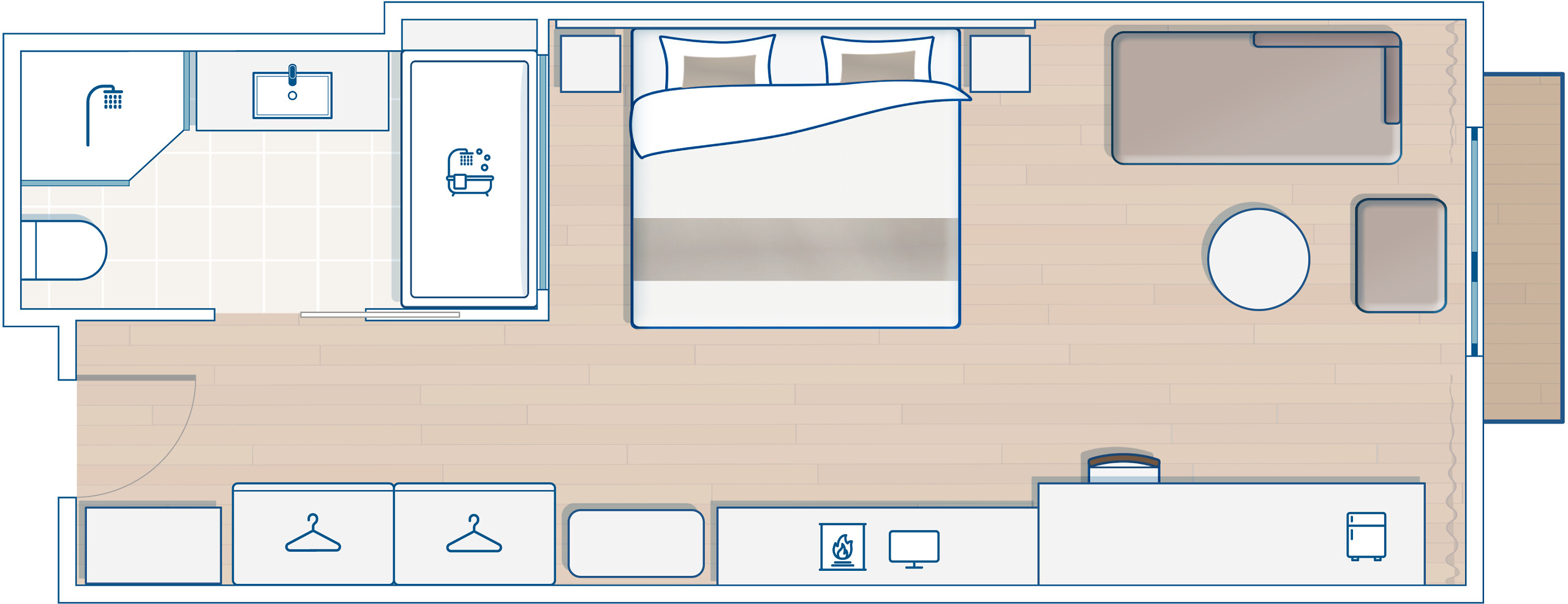 - Deluxe Room ห้องพักที่ใหญ่ขึ้นและมีสิ่งอำนวยความสะดวกเพิ่มเติม เช่น โซฟาเบดและพื้นที่นั่งเล่นที่แยกต่างหาก