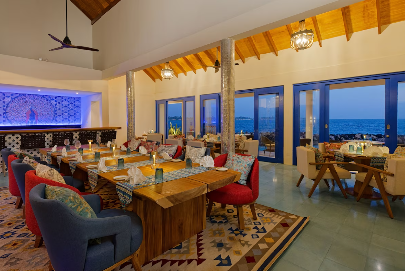 - เป็นห้องอาหารที่นำเสนอเมนูอาหารอินเดียแท้ ๆ ในบรรยากาศโรแมนติกและเงียบสงบ เหมาะสำหรับมื้อค่ำพิเศษระหว่างการพักผ่อน ตัวร้านตั้งอยู่ในทำเลที่สามารถชมวิวทะเลได้อย่างสวยงาม เสิร์ฟอาหารปรุงสดใหม่ด้วยเครื่องเทศและสูตรดั้งเดิม ให้แขกได้สัมผัสรสชาติอาหารอินเดียเข้มข้น พร้อมบรรยากาศสบาย ๆ แบบมัลดีฟส์.