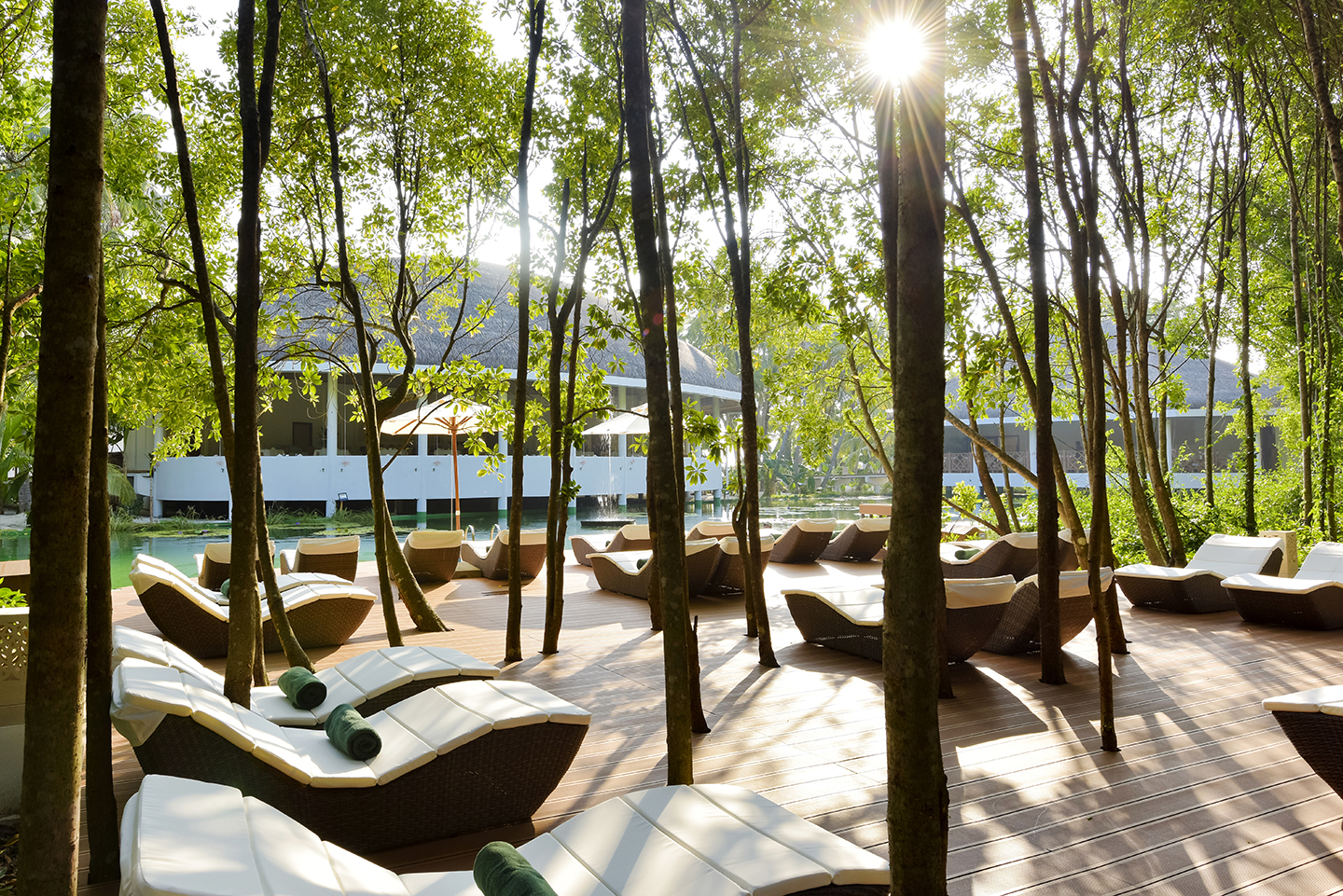 หนึ่งในจุดเด่นที่หาไม่ได้จากที่อื่นคือรีสอร์ตนี้ตั้งอยู่บนเกาะที่มีทั้งทะเลและทะเลสาบน้ำจืด นอกจากจะสามารถสนุกกับการเล่นน้ำทะเลสีฟ้าครามแล้ว แขกยังสามารถพักผ่อนริมทะเลสาบน้ำจืดที่มีบรรยากาศสงบเงียบ เพิ่มความหลากหลายและไม่เหมือนใครให้กับการพักผ่อน