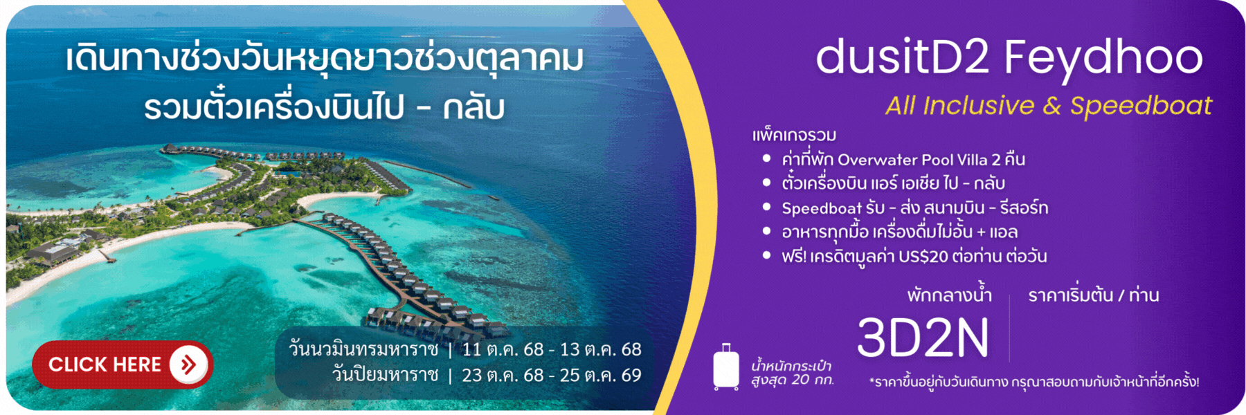 โปรโมชั่นแพ็คเกจมัลดีฟส์ + ตั๋วเครื่องบิน