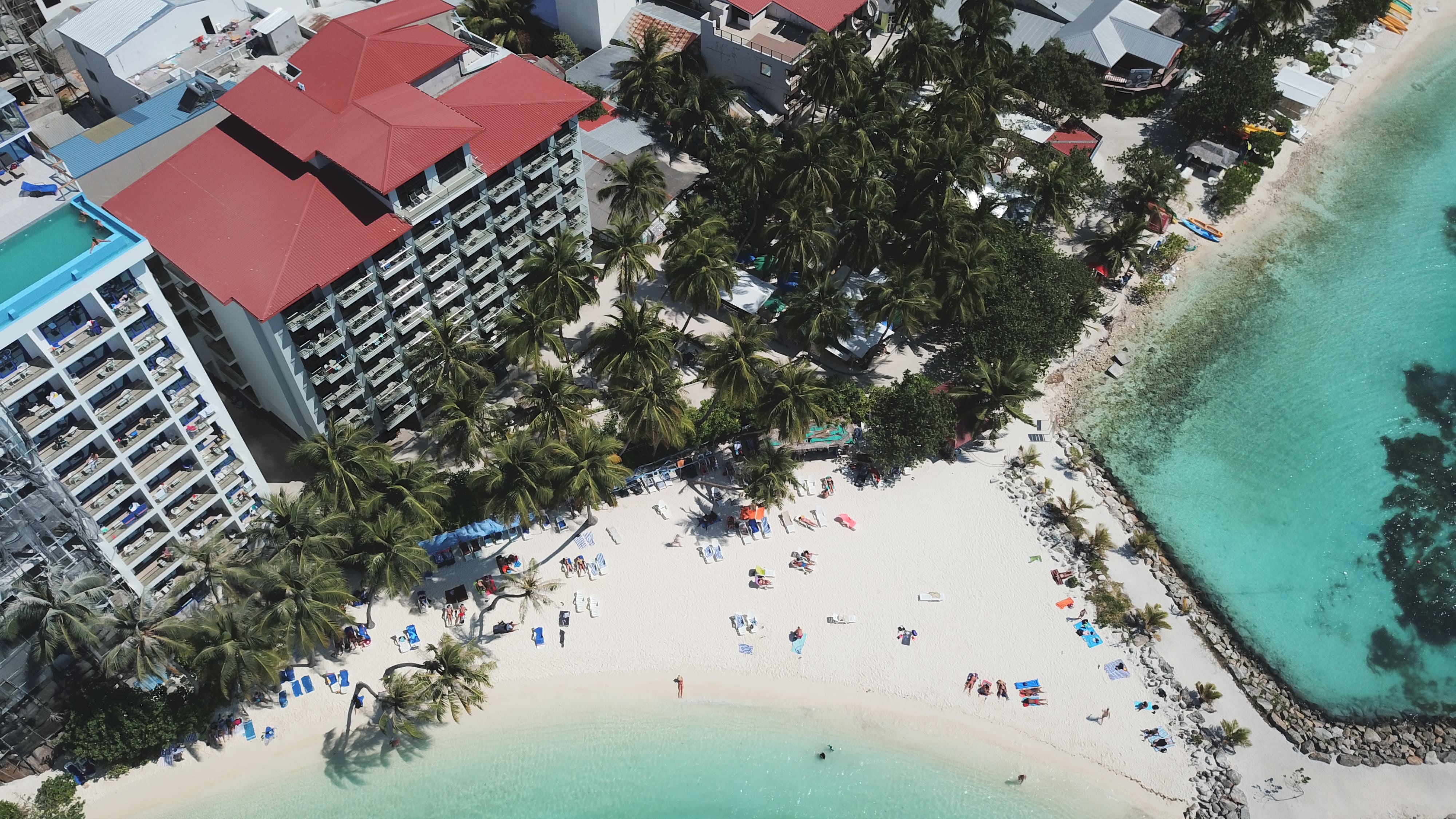 เป็นโรงแรมริมทะเลยอดนิยมบนเกาะ Maafushi หนึ่งในโลเคชันที่คึกคักที่สุดของมัลดีฟส์ โรงแรมตั้งอยู่ติดกับ Bikini Beach ทำเลที่ดีที่สุดบนเกาะ เดินเพียงไม่กี่ก้าวก็ถึงชายหาด พร้อมวิวทะเลที่สวยงามในราคาคุ้มค่า จุดเด่นของที่พักคือ Rooftop Infinity Pool บนชั้นดาดฟ้า ให้ผู้เข้าพักชมวิวมหาสมุทรแบบพาโนรามา อีกทั้งมีห้องพักหลายประเภททั้งแบบ Sea View และ Balcony รองรับทั้งคู่รัก เพื่อน และครอบครัว โรงแรมให้บริการสิ่งอำนวยความสะดวกครบครัน เช่น ห้องอาหาร สปา บริการทัวร์ดำน้ำ ดำน้ำตื้น ทริป Sandbank ทริปดูปลากระเบน/ฉลาม Nurse Shark รวมถึงกิจกรรมทางน้ำหลากหลาย ทำให้เป็นตัวเลือกที่ ตอบโจทย์นักท่องเที่ยวที่ต้องการสัมผัสมัลดีฟส์ในราคาเป็นมิตร แต่ยังได้บรรยากาศติดทะเลสวยแบบรีสอร์ท ด้วยบริการที่เข้าถึงง่าย ทำเลดี ราคาคุ้มค่า และบรรยากาศริมทะเลสุดผ่อนคลาย Kaani Palm Beach Maafushi เป็นตัวเลือกยอดนิยมสำหรับนักท่องเที่ยวที่ต้องการประสบการณ์มัลดีฟส์แบบครบจบในเกาะเดียว!